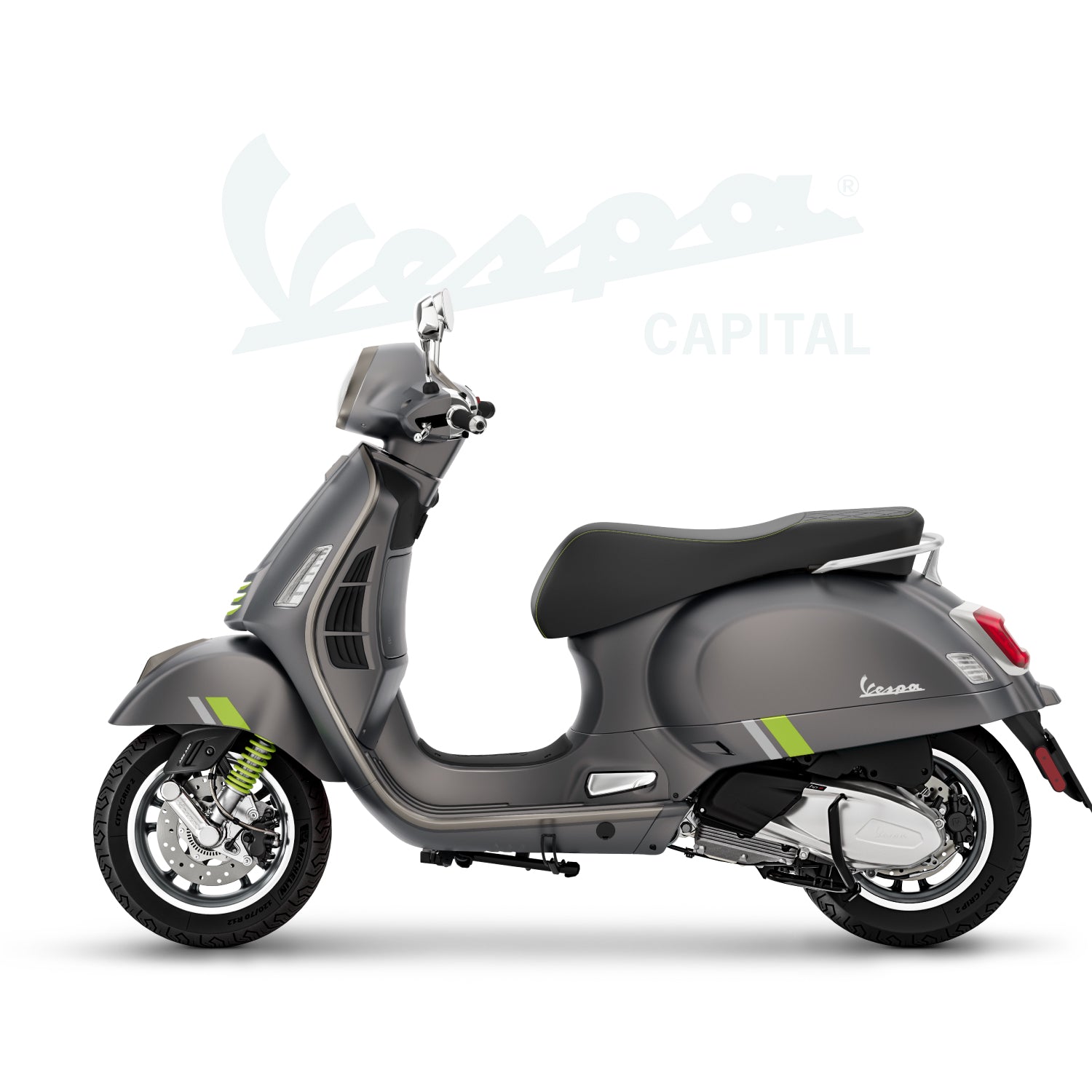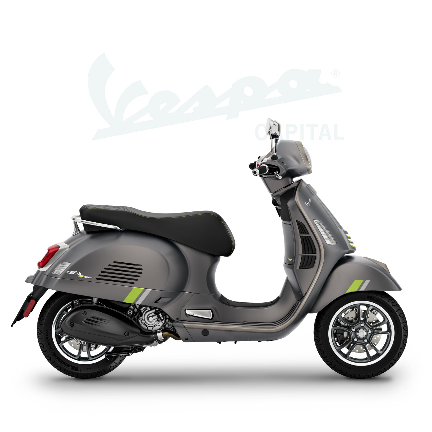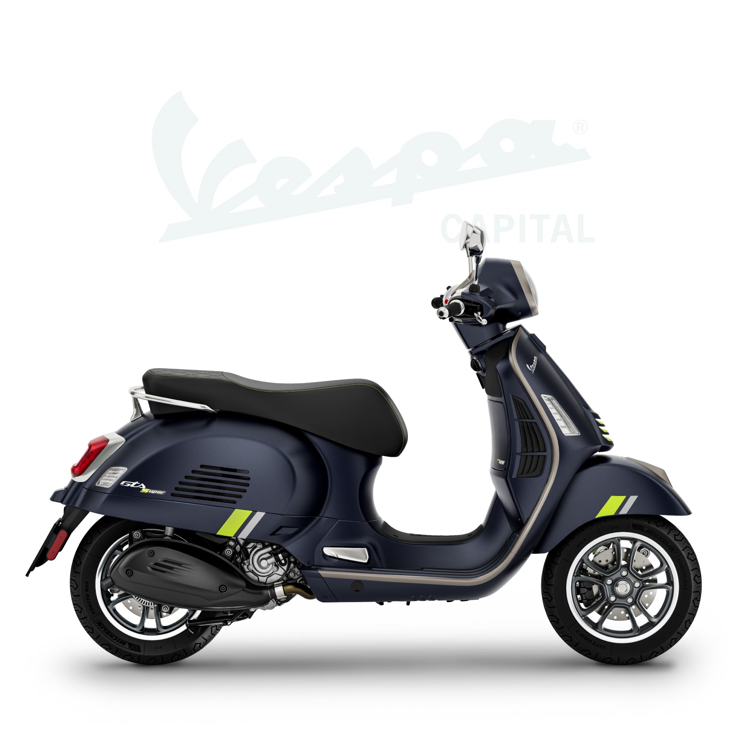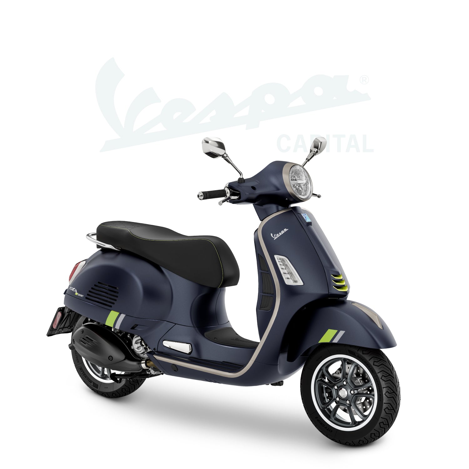 Un diseño único y cautivador que encarna la exclusividad y la innovación tecnológica de un auténtico icono italiano. La Vespa Gts SuperTech destaca por sus colores brillantes y mate, líneas cromáticas y detalles fluorescentes que realzan su espíritu refinado y de alta tecnología. El asiento y los bordes del escudo, meticulosamente elaborados en negro, realzan aún más su elegancia y carácter.